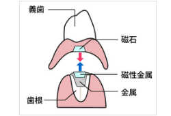 マグフィット(磁石)を土台の歯と義歯に埋め込み、磁石で装着します。