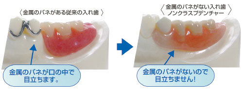1:クラスプ(針金)を使用しないので、見た目が良い